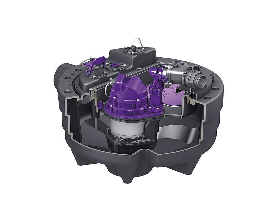 Automatische pompinstallatie voor fecaliënhoudend afvalwater. Geschikt voor vorstvrije bovengrondse opstelling (kelderopbouw). Pompinstallatie compleet met pneumatische niveausensor,