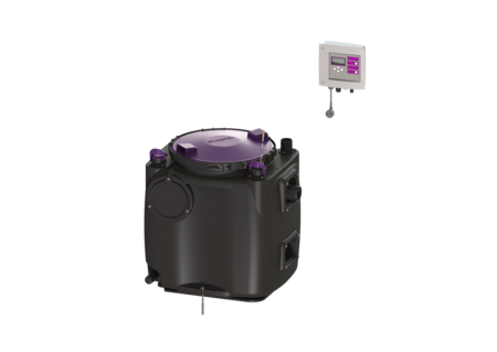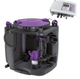 De aansluitklare opvoerinstallatie voor fecaliënvrij afvalwater is uitgerust met een of twee onderdompelbare pompen en een terugslagklep. Het verzamelreservoir, gemaakt van duurzaam bestendig kunststof (PE), beschikt over een open pompbehuizing. Geïntegreerde onderdelen kunnen eenvoudig met eenhandige sluitingen worden verwijderd.