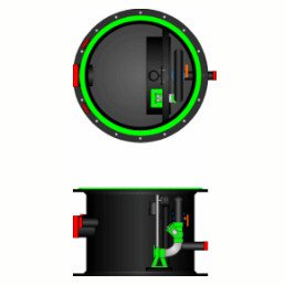 Het UMAX800 Bodemdeel Mono BD14 is voorzien van 1x inbouwset. De gesloten bodemflens is waterdicht afgelast. De anti-opdrijfflens aan bovenzijde is uitgevoerd met boutgaten en voorzien van een in gefreesde tokrolring welke dient als afdichting. Wordt geleverd exclusief perspomp.